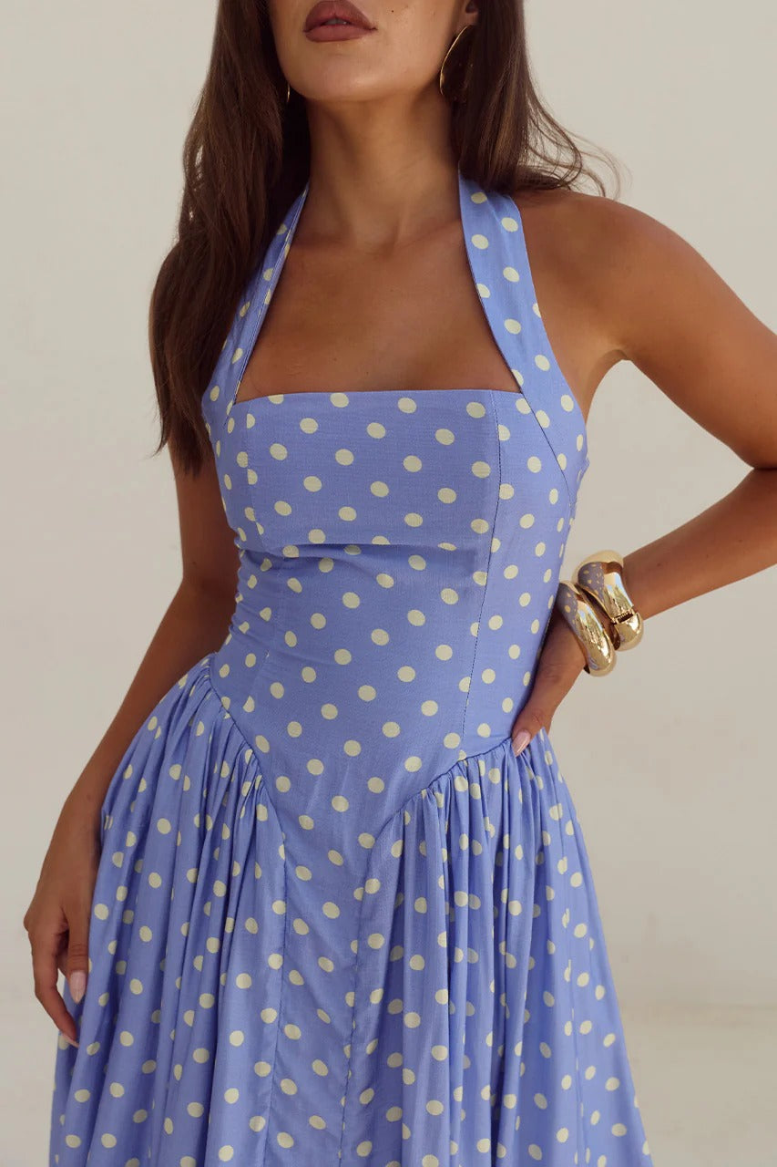 Sammi Midi Dress - Periwinkle/Lemon Polka